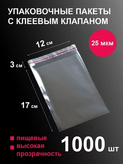 Пакеты 12х17 см 1000 шт полипропиленовые с клеевым клапаном