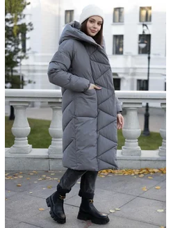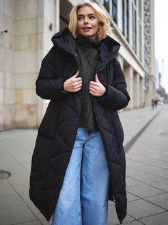 Пуховик длинный зимний с капюшоном