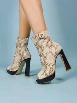 Ботинки летние из натуральной кожи под бежевый питон