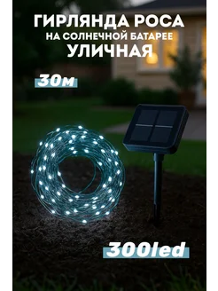 Гирлянда роса на солнечной батарее уличная 30м