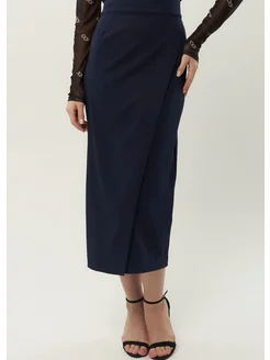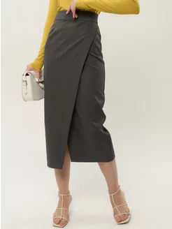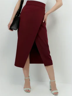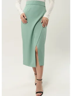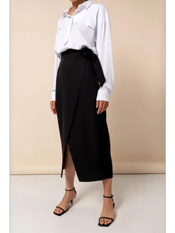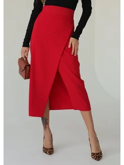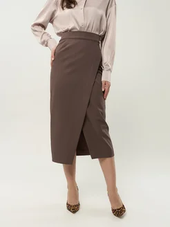 Юбка на запах миди с разрезом офисная
