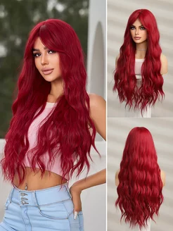 рыжий парик кудрявый омбре длинные волосы с челкой