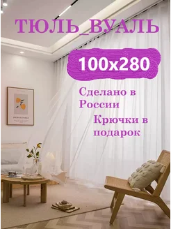 Тюль вуаль белая для кухни ширина 100х280 см высота