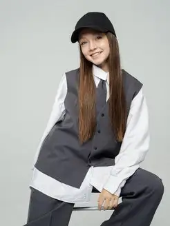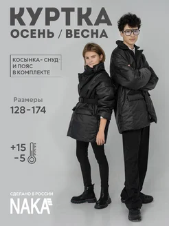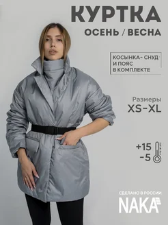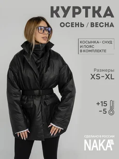 Демисезонная куртка-пиджак оверсайз с поясом и косынкой