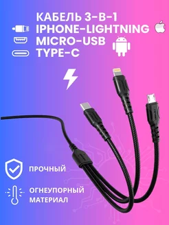 Кабель D05E USB 3-в-1 Type-C+Micro+Lightning, чёрный