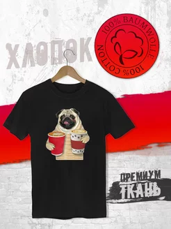Футболка черная белая 100% хлопок с принтом МОПС С КОФЕ