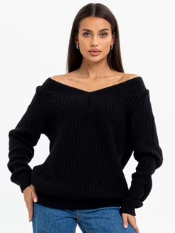 Кофта хлопковая вязаная с открытыми плечами оверсайз