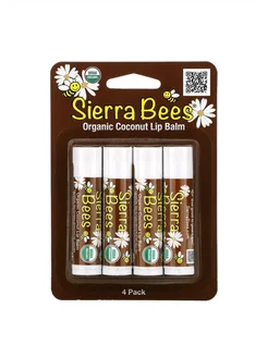 Органические бальзамы для губ, Кокос, 4 шт. по 4,25 г