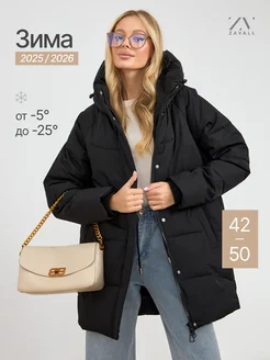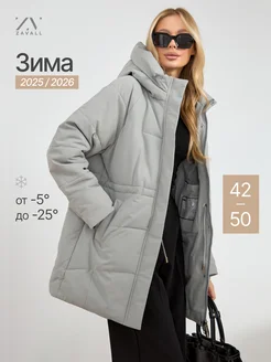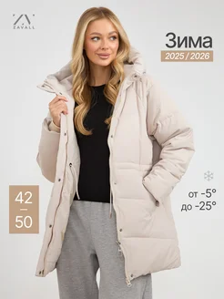 Куртка зимняя с капюшоном удлиненная пуховик теплый оверсайз