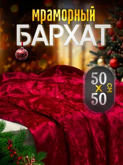 Ткань Бархат Мраморный Красный для шитья, Отрез 50х50см
