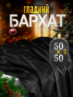Ткань Бархат Гладкий Черный для шитья, Отрез 50х50см