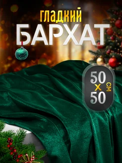 Ткань Бархат Гладкий Изумрудный для шитья, Отрез 50х50см