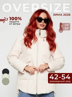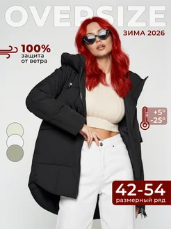 Куртка зимняя длинная утепленная с капюшоном оверсайз
