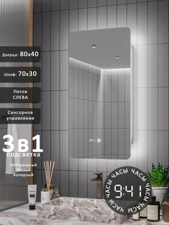 Зеркало шкаф в ванную с подсветкой 80х40