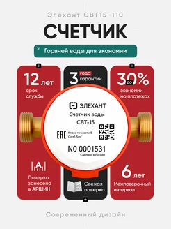 Счетчик для горячей воды СВТ-15 Ду 15 без КМЧ