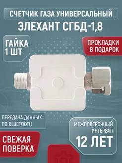 Счетчик газа бытовой СГБД-1,8 Ду 15 гайка в комплекте