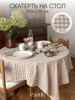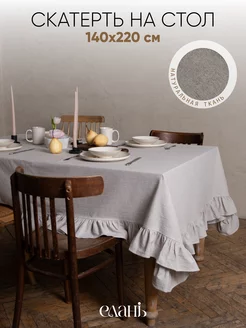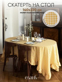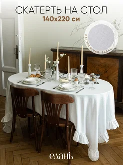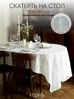 Скатерть тканевая из хлопка 180х135 с рюшами и кружевом