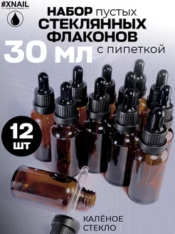 Флаконы косметические с пипеткой 30мл стеклянные набор 12шт