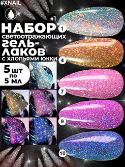 Гель лак для ногтей с блестками глиттером и шестигранниками