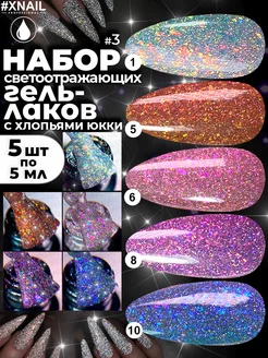 Гель лак для ногтей с блестками светоотражающий набор