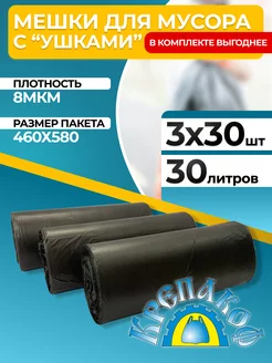 Пакеты для мусора 30 л 90 шт ПНД 8 мкм с ушками