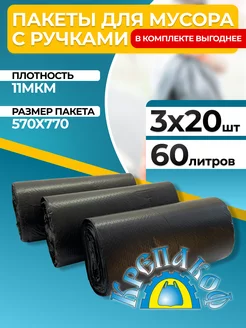 Пакеты для мусора 60 л 60 шт ПНД 11 мкм с ручками