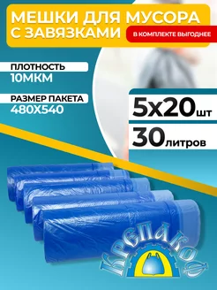 Мешки для мусора 30 л 100 шт ПНД 10 мкм с завязками
