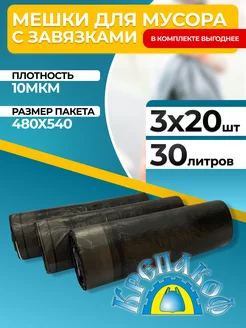 Мешки для мусора 30 л 60 шт ПНД 10 мкм с завязками