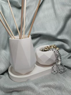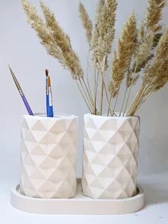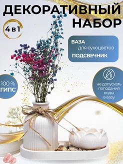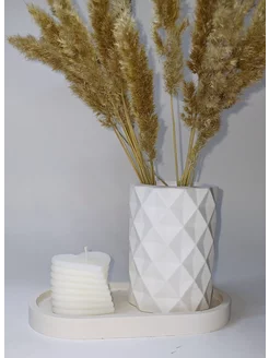 Ваза для сухоцветов мини интерьерный набор из белого гипса