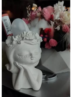 Кашпо девочка из гипса для интерьера дома и суккулентов