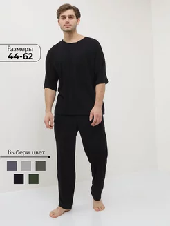 Пижама со штанами и футболкой черная оверсайз, комплект