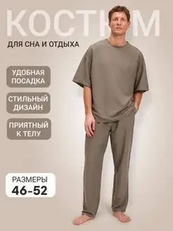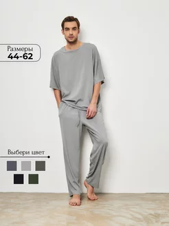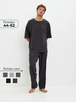 Пижама со штанами и футболкой темно-серый оверсайз, комплект