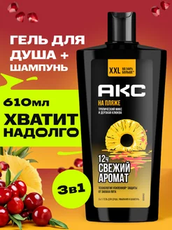 Гель для душа и шампунь мужской 3в1 Axe на пляже
