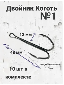 Крючок рыболовный двойник №1 Коготь в упаковке 10шт