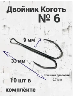 Крючок рыболовный двойник №6 Коготь в упаковке 10шт