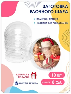 Прозрачная новогодняя заготовка елочного шара Д8 см 10 штук