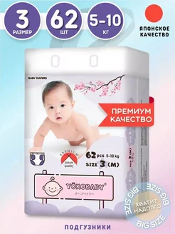 Подгузники Baby Diaper M, Размер 3, 5-10 кг, 62шт