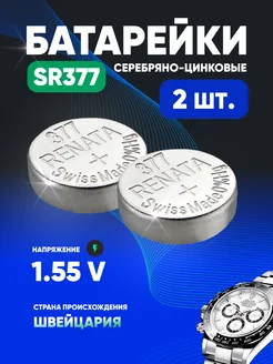 Батарейка SR377 круглая таблетка 1.55v, 2 шт