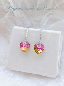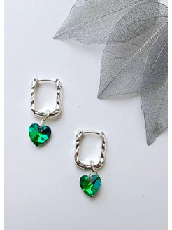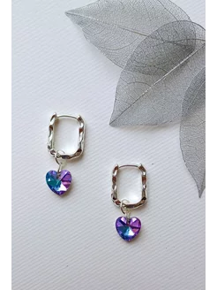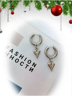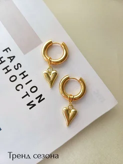 Серьги конго с подвесками сердечки в подарок бижутерия