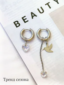 Серьги кольца конго сердце в подарок бижутерия ассиметричные