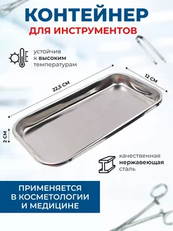 Лоток контейнер медицинский нержавеющий 22,5x12x2 см