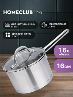 Ковш кухонный с крышкой 1,6 л, нержавеющая сталь