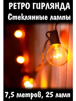 Гирлянда с лампочками накаливания в ретро стиле 7,5 метро