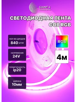 Светодиодная RGB COB лента 840 led 24v 14w ip20 4м