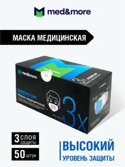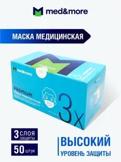 Маска медицинская PREMIUM Мед энд Мор голубая 50 штук в уп