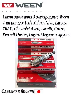 Свечи зажигания Вин (Япония) трёхэлектродные 4 штуки