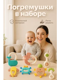 Набор погремушек-прорезывателей 5 шт для новорождённых