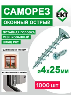 Саморез для оконного профиля острый 4х25 цинк 1000шт
