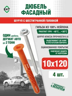Фасадный дюбель 10х120 с шурупом под ключ 4 шт