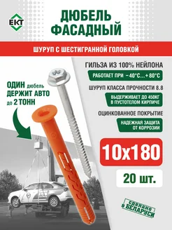 Фасадный дюбель 10х180 с шурупом под ключ 20 шт